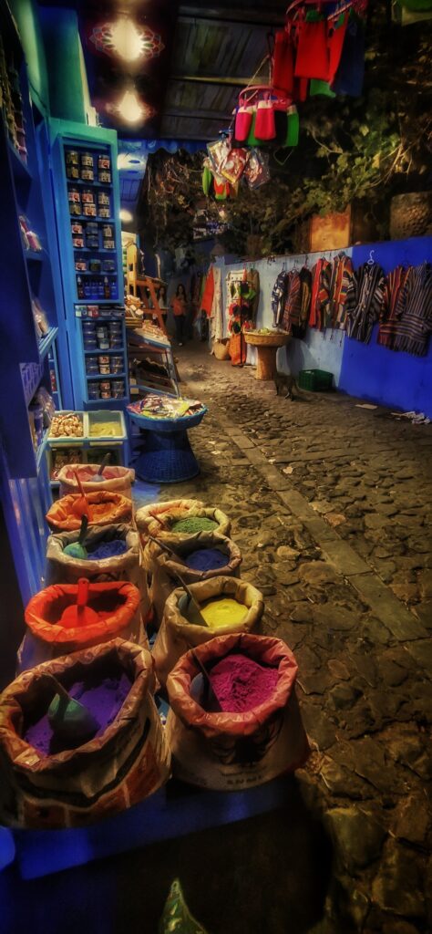 La medina de Chaouen, también conocida como el “pueblo azul de Marruecos”, es un lugar emblemático. Chaouen es conocida por sus estrechas calles empedradas y casas pintadas en tonos de azul intenso, lo que la convierte en uno de los destinos más fotogénicos de Marruecos.