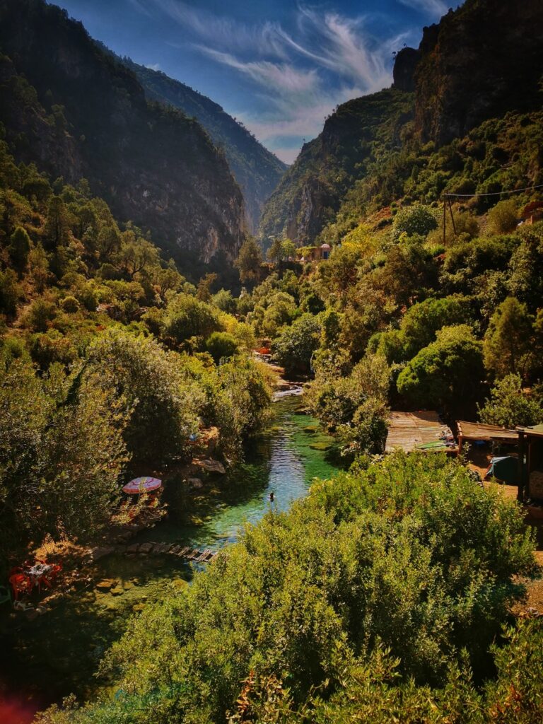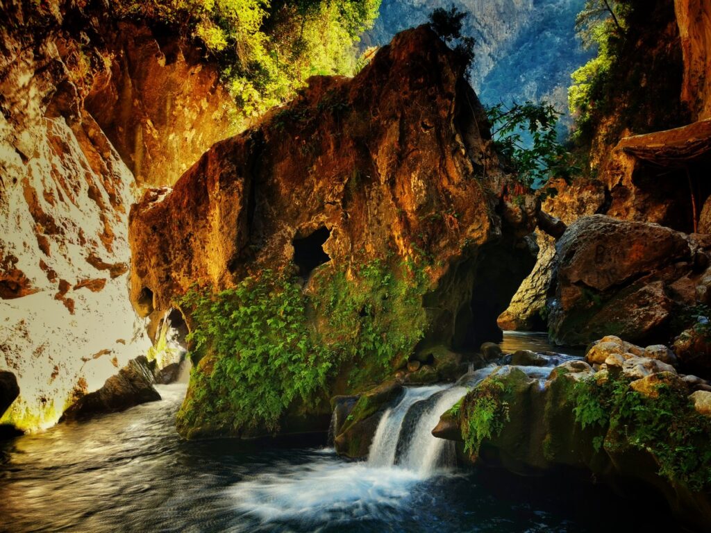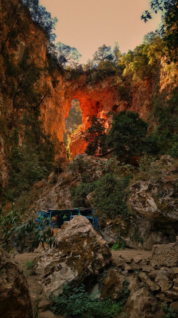Las cataratas y el puente de dios están situadas en las montañas del Rif, norte de Marruecos. Impresionante vistas, muchísima vegetación cascadas y profundas gargantas.