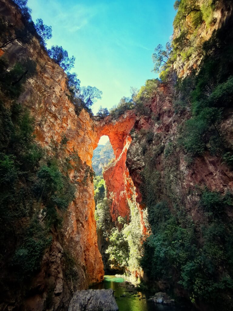 2ª ruta del Puente de Dios .Esta ruta se puede hacer por dos sitios diferentes. Ruta desde arriba(si no tienes vértigo) y ruta por dentro de la garganta por el cual puedes ir al final y entrar al agua y nadar en sus charcos de aguas cristalinas .